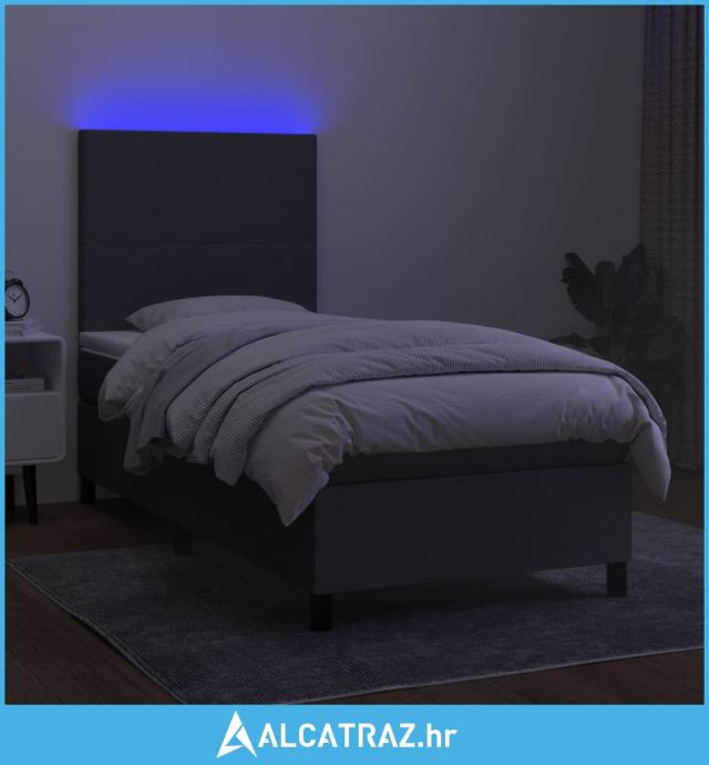 Krevet box spring s madracem LED tamnosivi 80 x 200 cm tkanina - NOVO