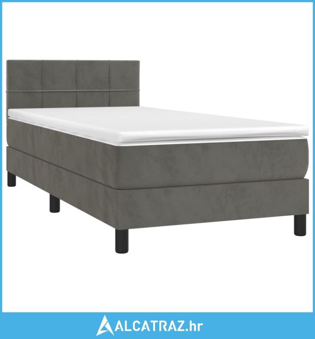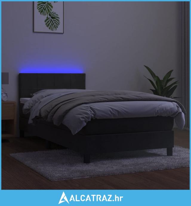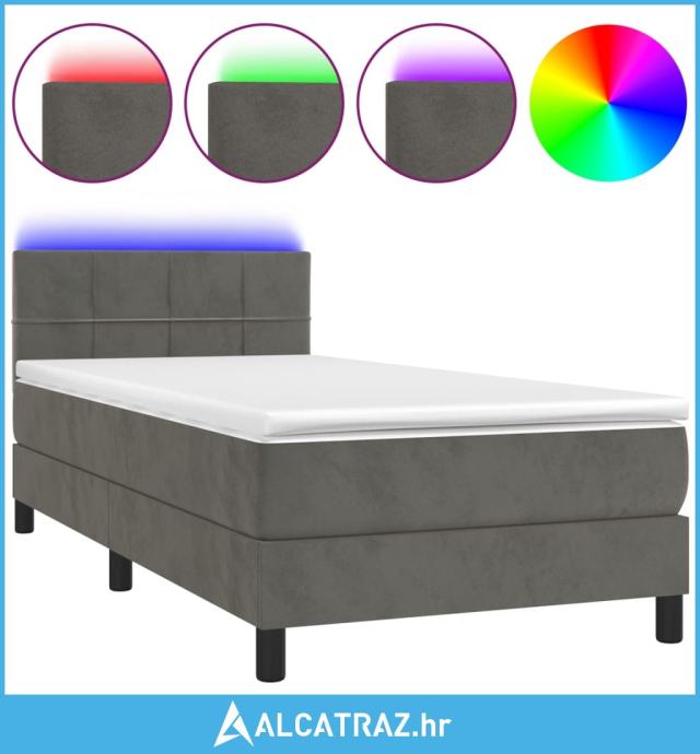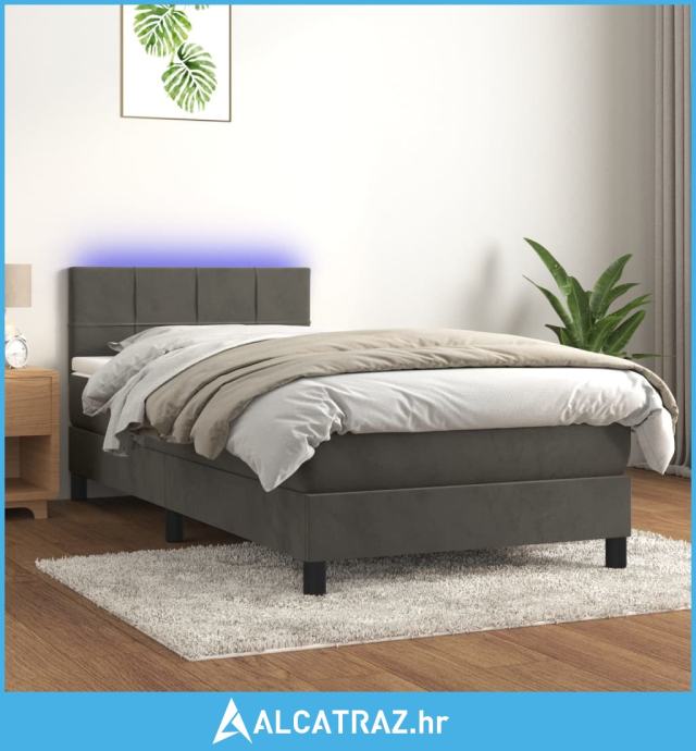 Krevet box spring s madracem LED tamnosivi 90x190 cm baršun - NOVO