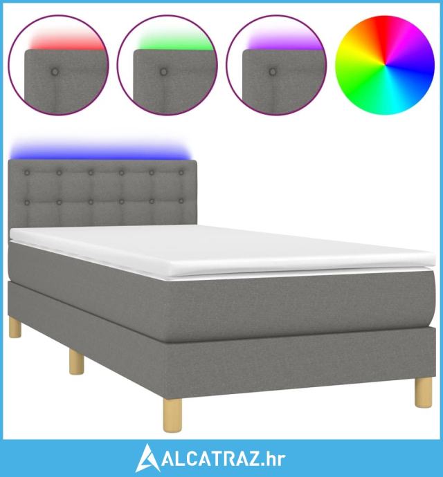 Krevet box spring s madracem LED tamnosivi 90x190 cm tkanina - NOVO