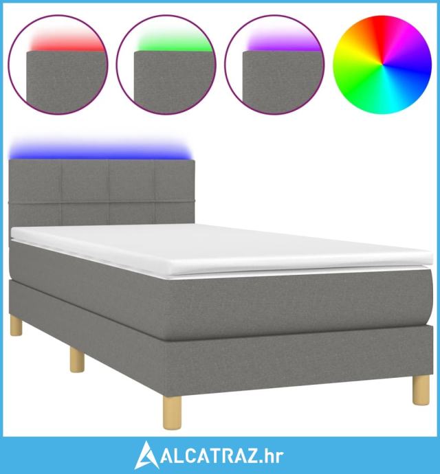 Krevet box spring s madracem LED tamnosivi 90x190 cm tkanina - NOVO