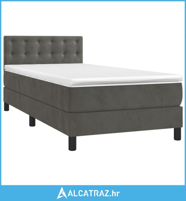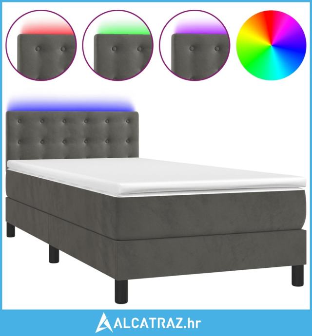 Krevet box spring s madracem LED tamnosivi 90x200 cm baršun - NOVO