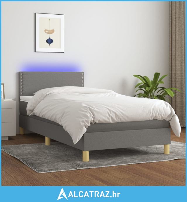 Krevet box spring s madracem LED tamnosivi 90x200 cm tkanina - NOVO