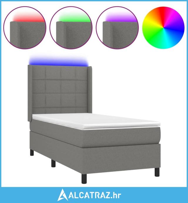 Krevet box spring s madracem LED tamnosivi 90x200 cm tkanina - NOVO