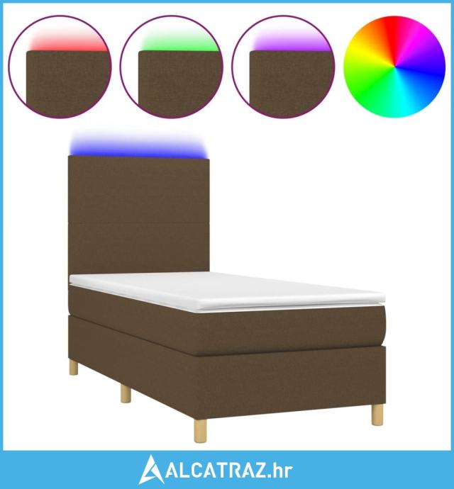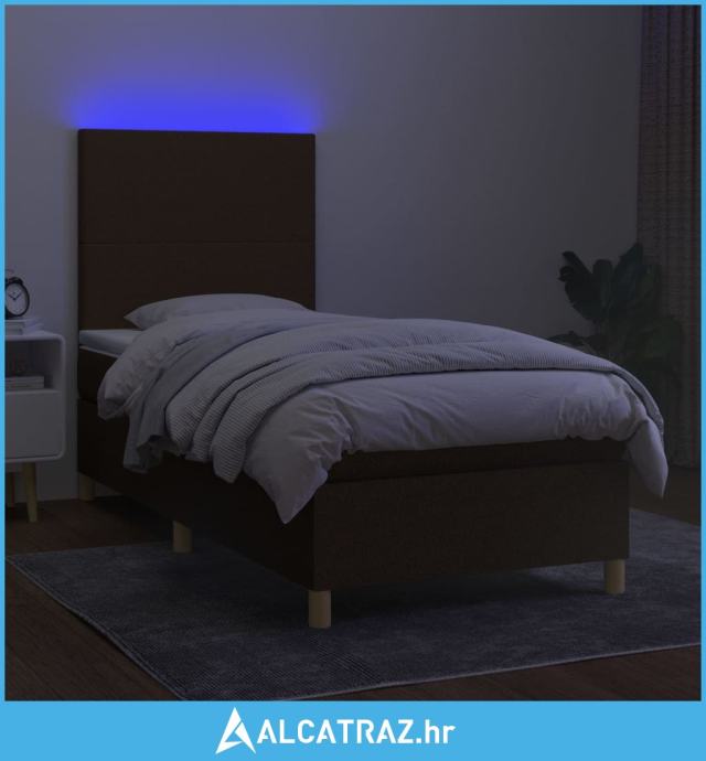 Krevet box spring s madracem LED tamnosmeđi 100x200 cm tkanina - NOVO