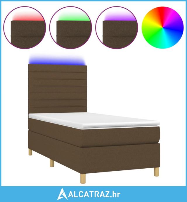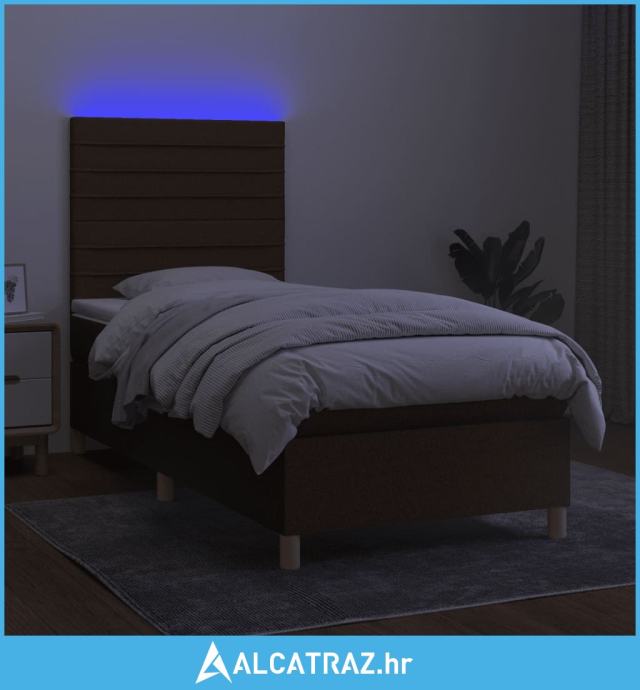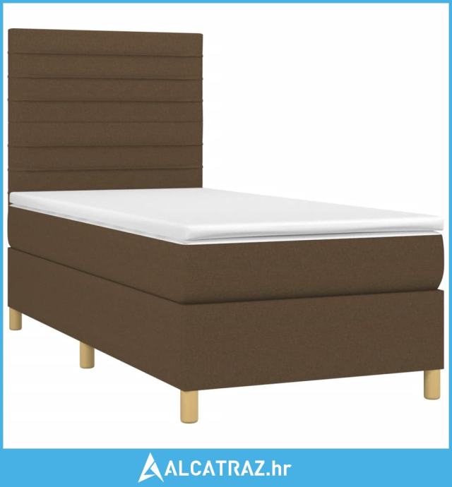 Krevet box spring s madracem LED tamnosmeđi 100x200 cm tkanina - NOVO