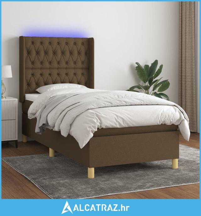 Krevet box spring s madracem LED tamnosmeđi 100x200 cm tkanina - NOVO
