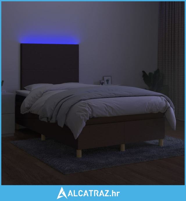 Krevet box spring s madracem LED tamnosmeđi 120x200 cm tkanina - NOVO
