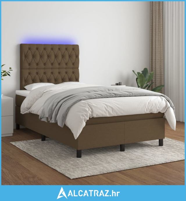 Krevet box spring s madracem LED tamnosmeđi 120x200 cm tkanina - NOVO
