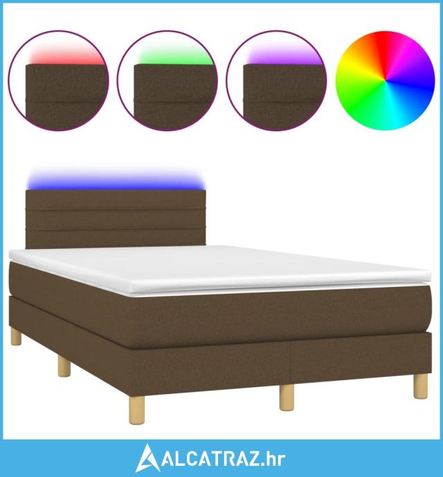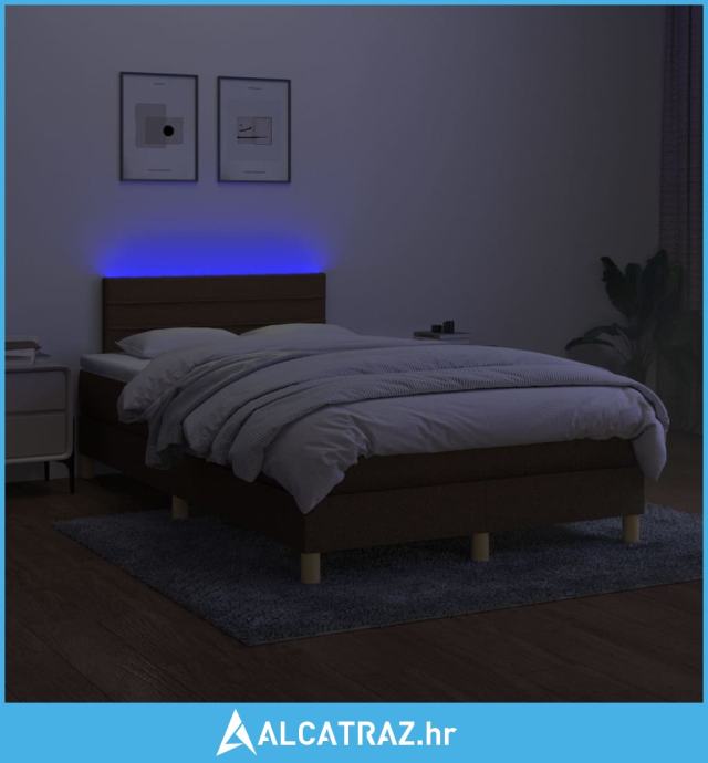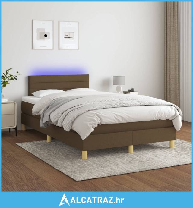 Krevet box spring s madracem LED tamnosmeđi 120x200 cm tkanina - NOVO