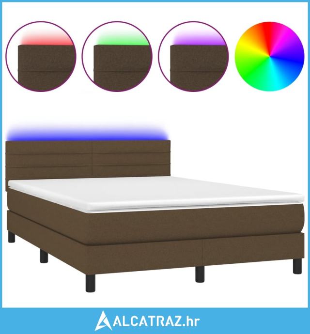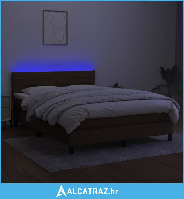 Krevet box spring s madracem LED tamnosmeđi 140x200 cm tkanina - NOVO