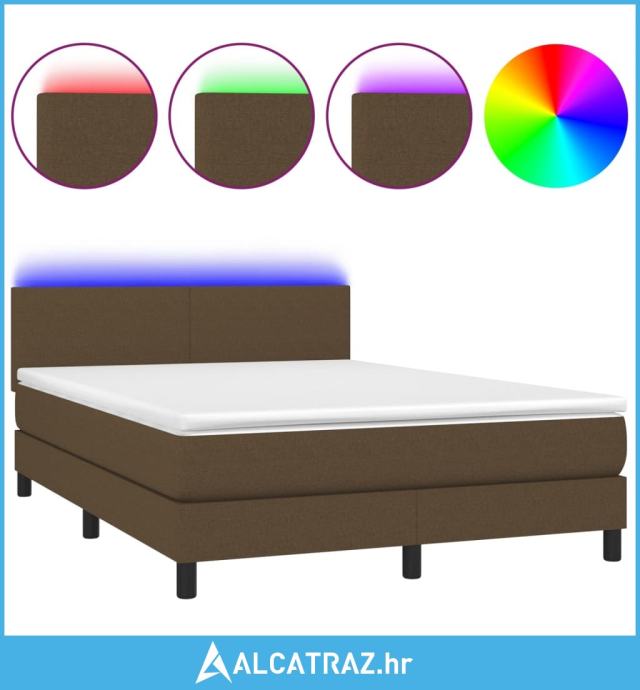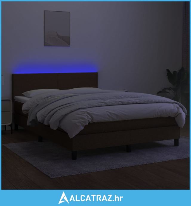 Krevet box spring s madracem LED tamnosmeđi 140x200 cm tkanina - NOVO