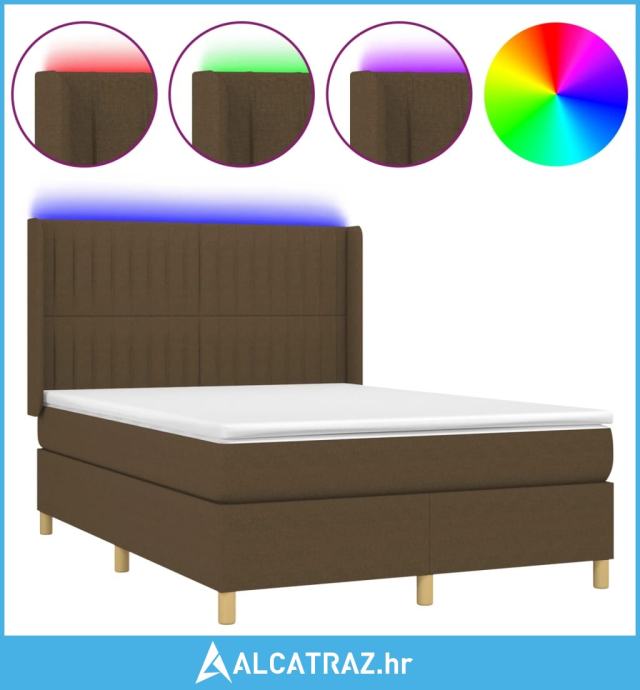 Krevet box spring s madracem LED tamnosmeđi 140x200 cm tkanina - NOVO