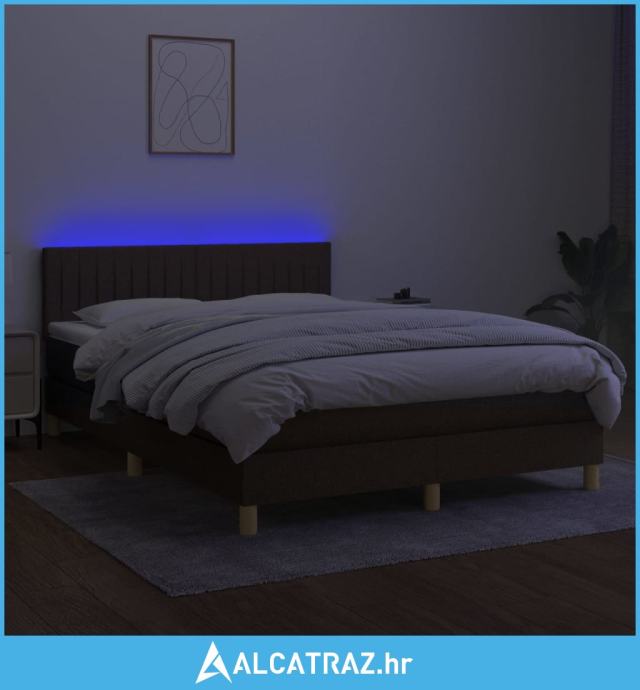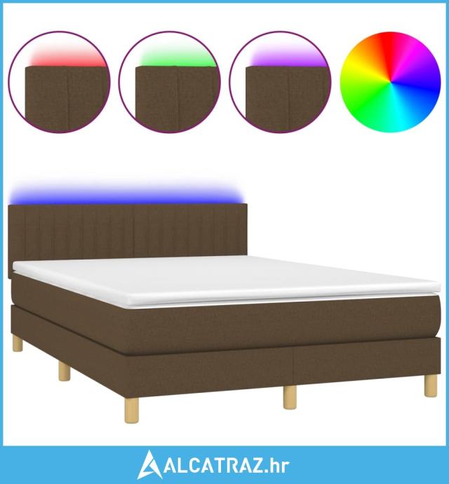 Krevet box spring s madracem LED tamnosmeđi 140x200 cm tkanina - NOVO