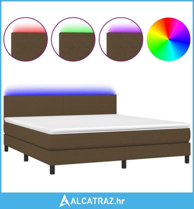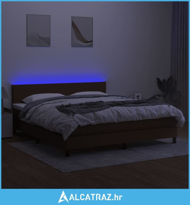 Krevet box spring s madracem LED tamnosmeđi 160x200 cm tkanina - NOVO
