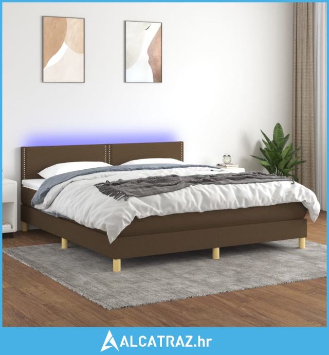 Krevet box spring s madracem LED tamnosmeđi 160x200 cm tkanina - NOVO