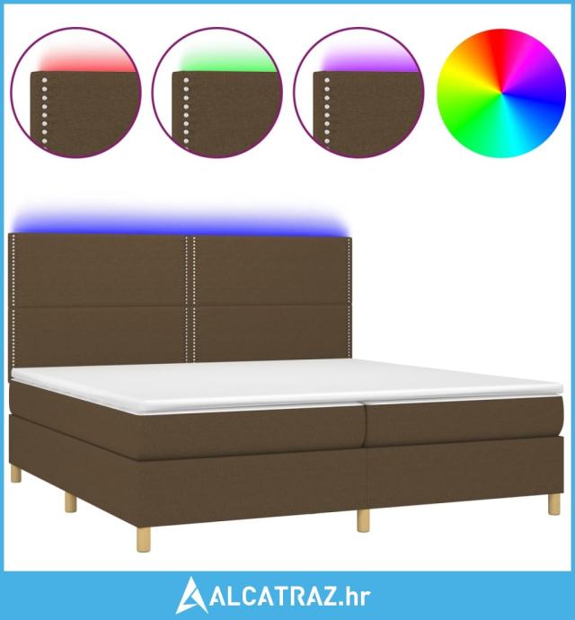 Krevet box spring s madracem LED tamnosmeđi 200x200 cm tkanina - NOVO