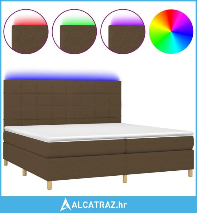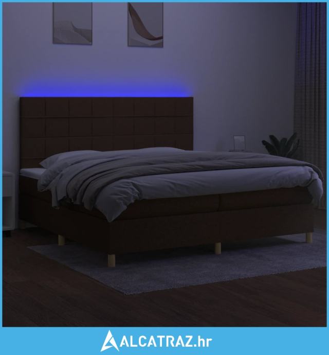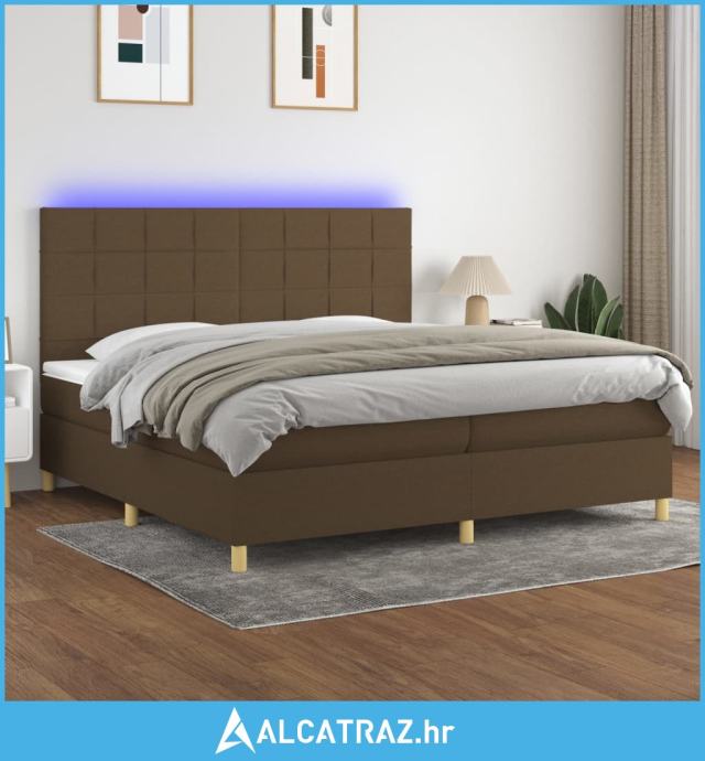 Krevet box spring s madracem LED tamnosmeđi 200x200 cm tkanina - NOVO