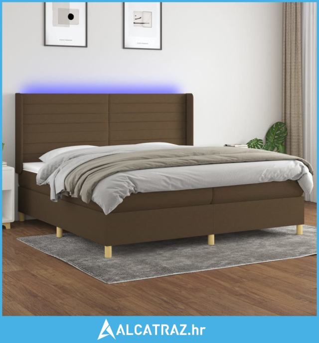 Krevet box spring s madracem LED tamnosmeđi 200x200 cm tkanina - NOVO