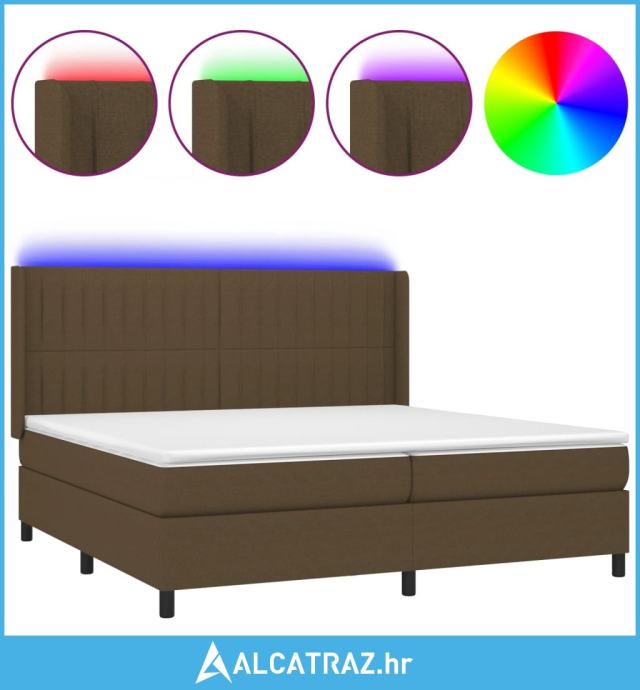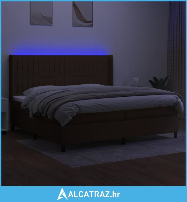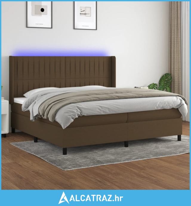 Krevet box spring s madracem LED tamnosmeđi 200x200 cm tkanina - NOVO