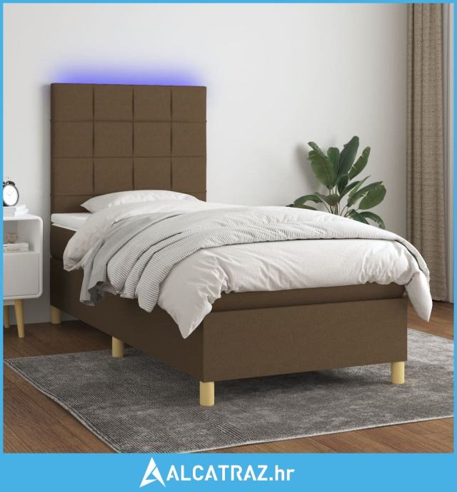 Krevet box spring s madracem LED tamnosmeđi 90x190 cm tkanina - NOVO