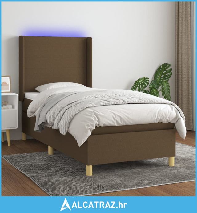 Krevet box spring s madracem LED tamnosmeđi 90x190 cm tkanina - NOVO