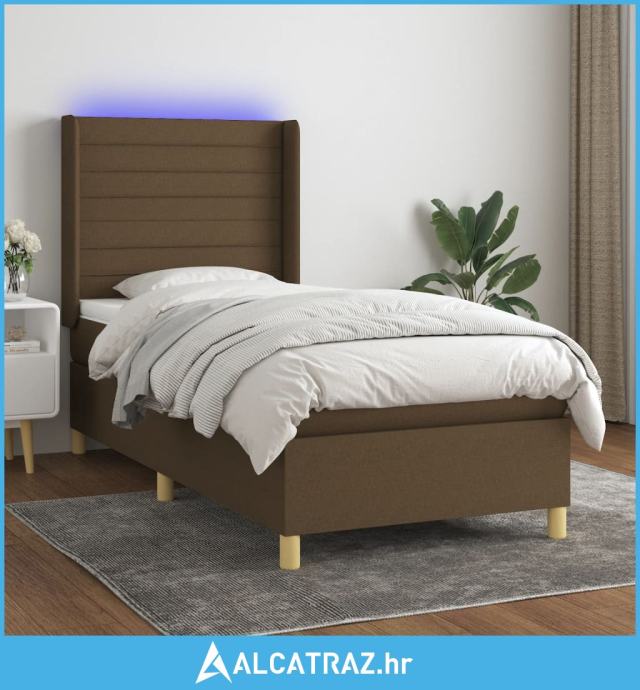 Krevet box spring s madracem LED tamnosmeđi 90x190 cm tkanina - NOVO
