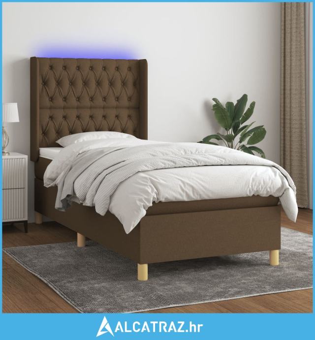 Krevet box spring s madracem LED tamnosmeđi 90x190 cm tkanina - NOVO
