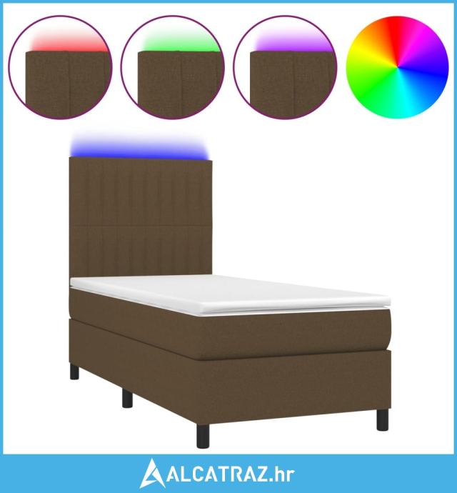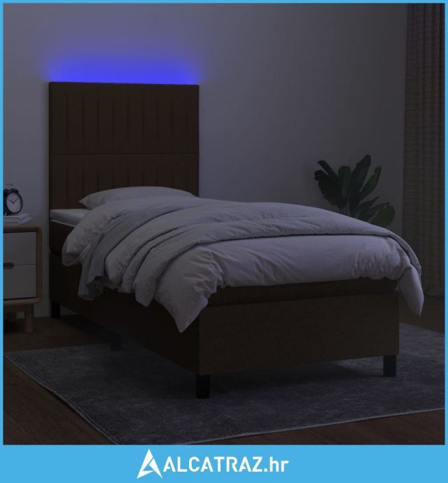Krevet box spring s madracem LED tamnosmeđi 90x200 cm tkanina - NOVO