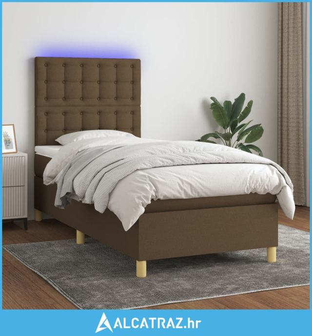 Krevet box spring s madracem LED tamnosmeđi 90x200 cm tkanina - NOVO