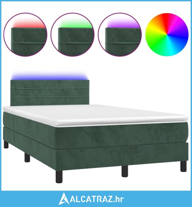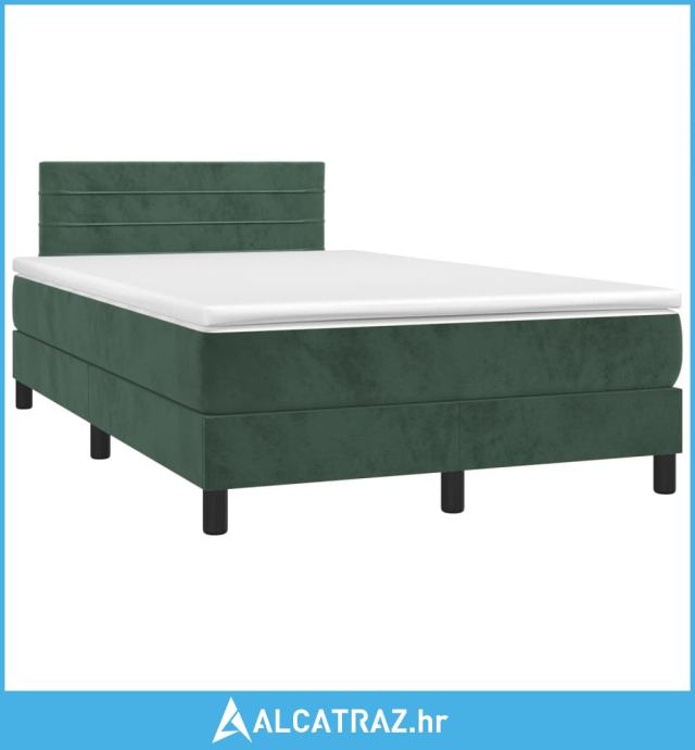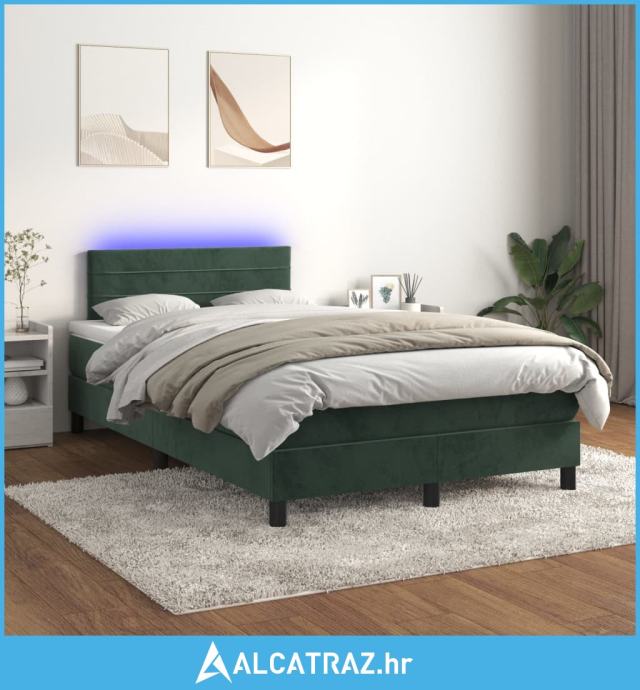Krevet box spring s madracem LED tamnozeleni 120x200 cm baršun - NOVO