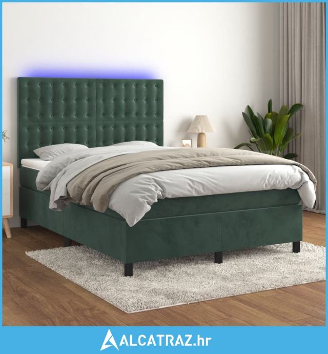 Krevet box spring s madracem LED tamnozeleni 140x190 cm baršun - NOVO