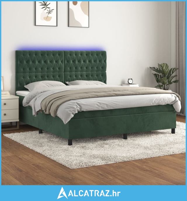 Krevet box spring s madracem LED tamnozeleni 160x200 cm baršun - NOVO