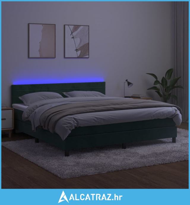 Krevet box spring s madracem LED tamnozeleni 180x200 cm baršun - NOVO