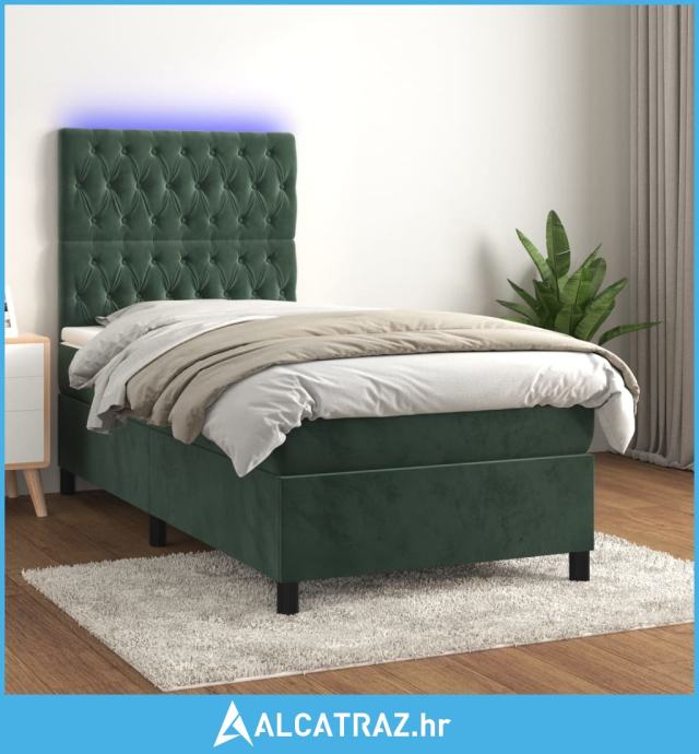 Krevet box spring s madracem LED tamnozeleni 80 x 200 cm baršun - NOVO