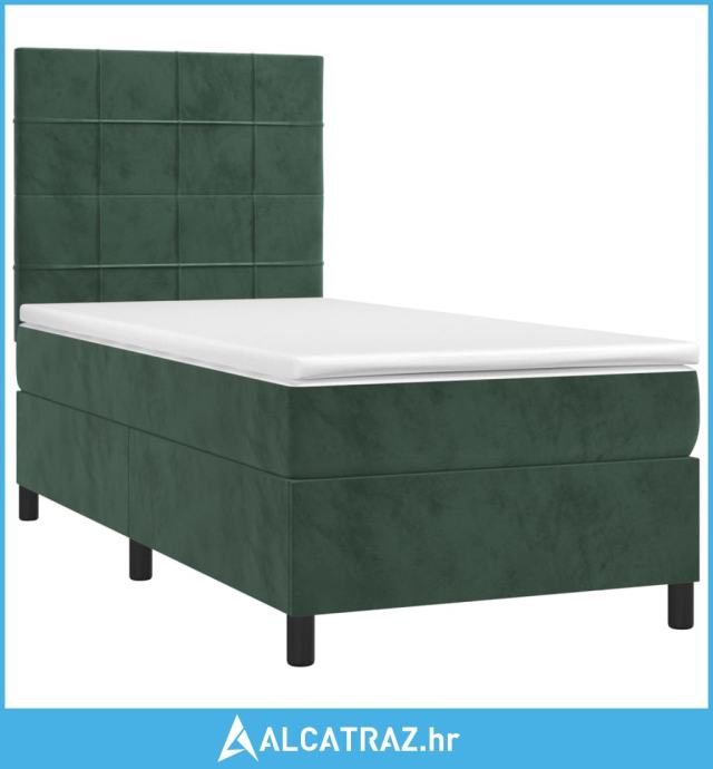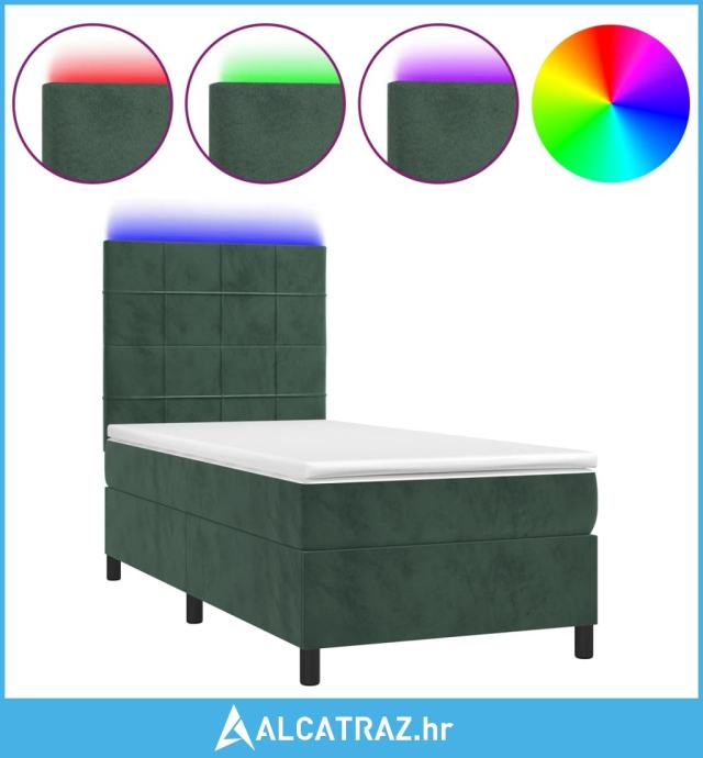 Krevet box spring s madracem LED tamnozeleni 90x200 cm baršun - NOVO
