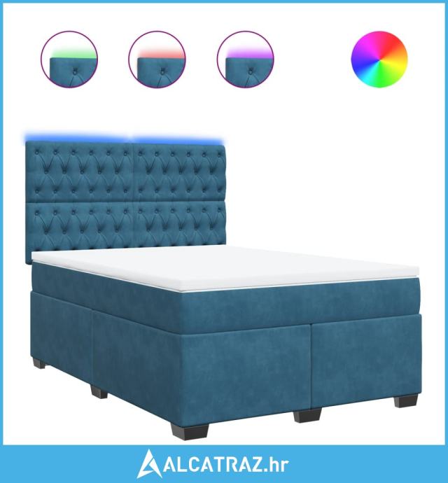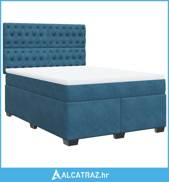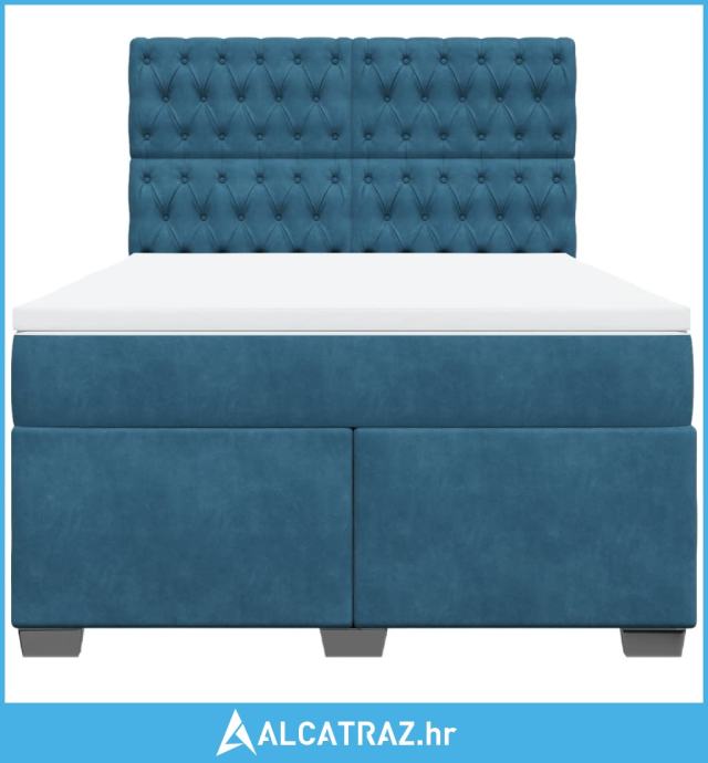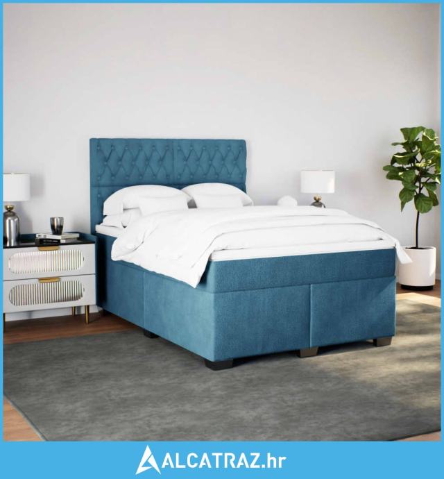 Krevet box spring s madracem plavi 160 x 200 cm baršunasti - NOVO