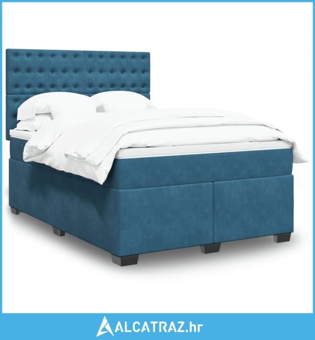 Krevet box spring s madracem plavi 160 x 200 cm baršunasti - NOVO
