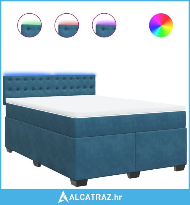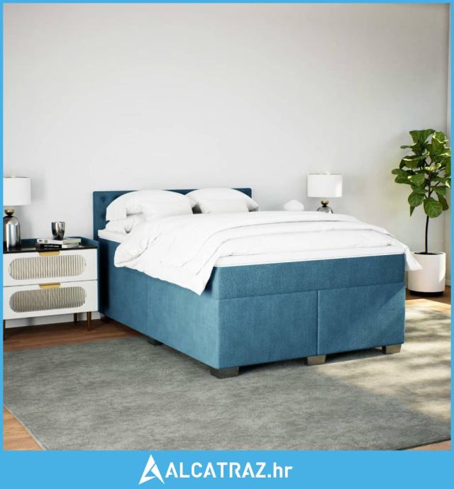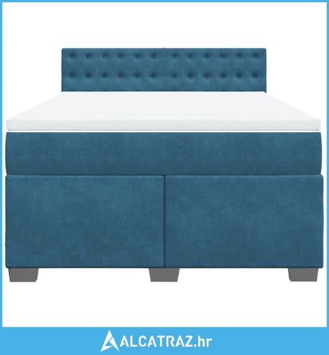 Krevet box spring s madracem plavi 160 x 200 cm baršunasti - NOVO