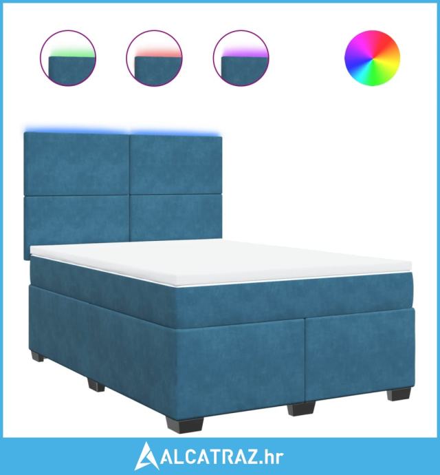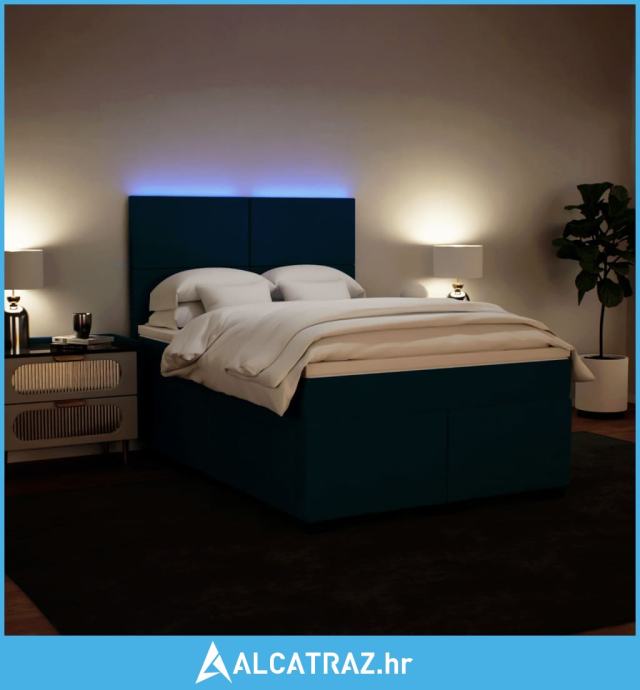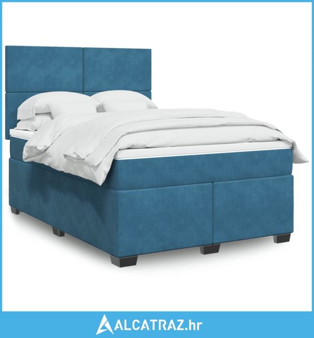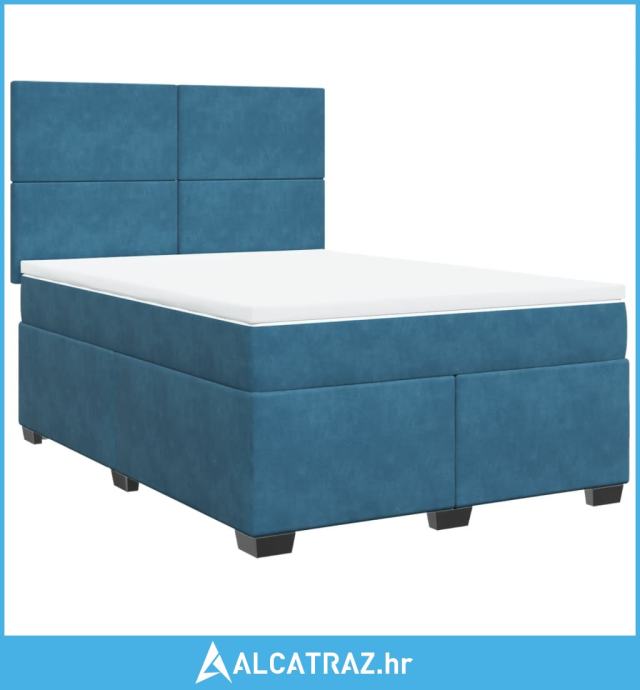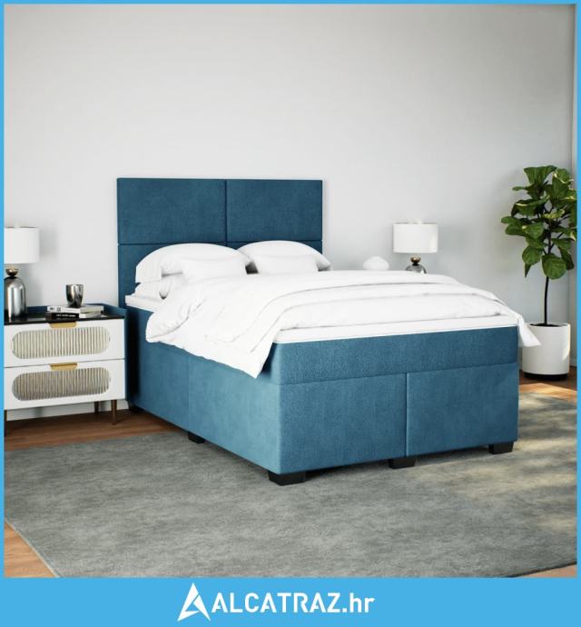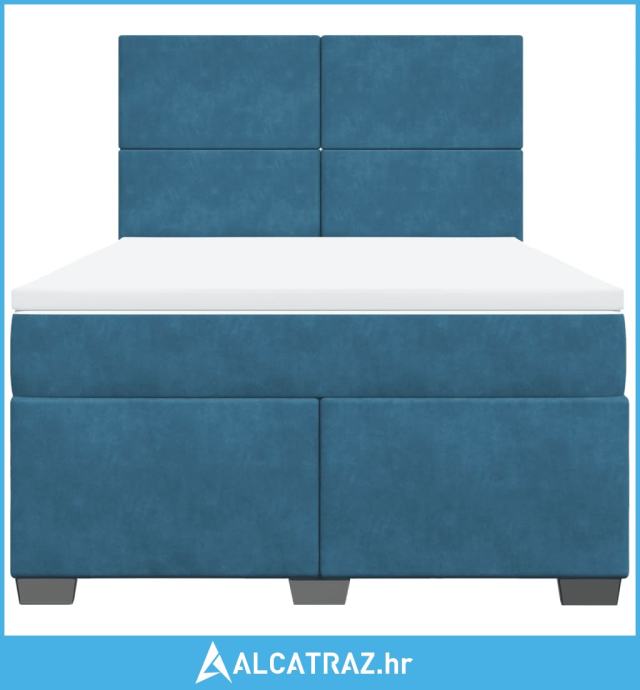 Krevet box spring s madracem plavi 160 x 200 cm baršunasti - NOVO