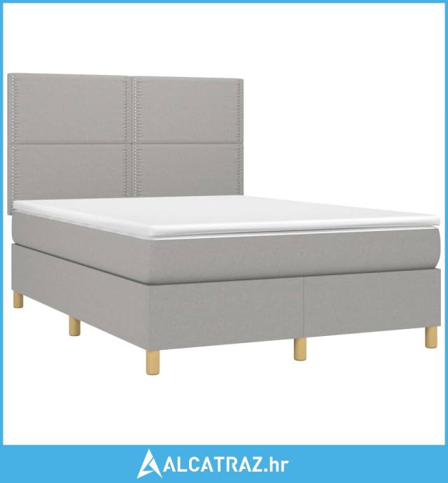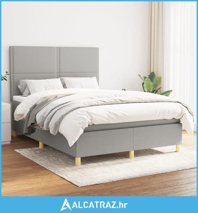 Krevet box spring s madracem svjetlosivi 140x200 cm od tkanine - NOVO