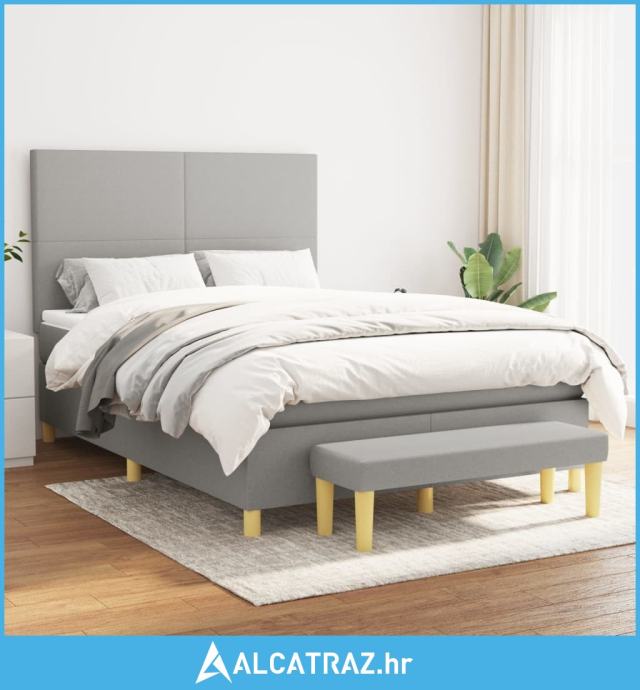 Krevet box spring s madracem svjetlosivi 140x200 cm od tkanine - NOVO