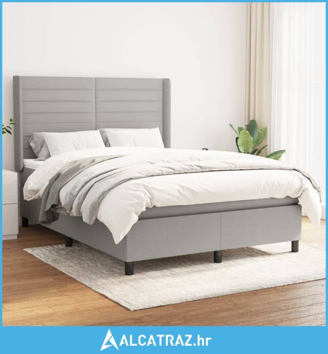 Krevet box spring s madracem svjetlosivi 140x200 cm od tkanine - NOVO