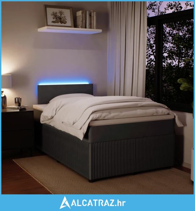 Krevet box spring s madracem tamnosivi 120 x 190 cm baršun - NOVO