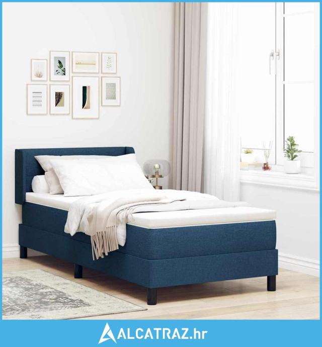 Krevet s Box Spring-om i Plavim Madracem 100x200 cm Tkanina - NOVO