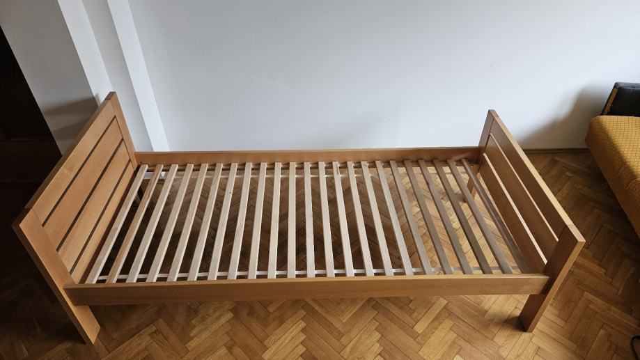 Krevet uščuvan i malo korišten i neoštećen bez tragova korištenja od punog bukovog drva. Moguća dostava i montaža. Cijena s madracem je 250 eur. Dostava je besplatna montaža po dogovoru.