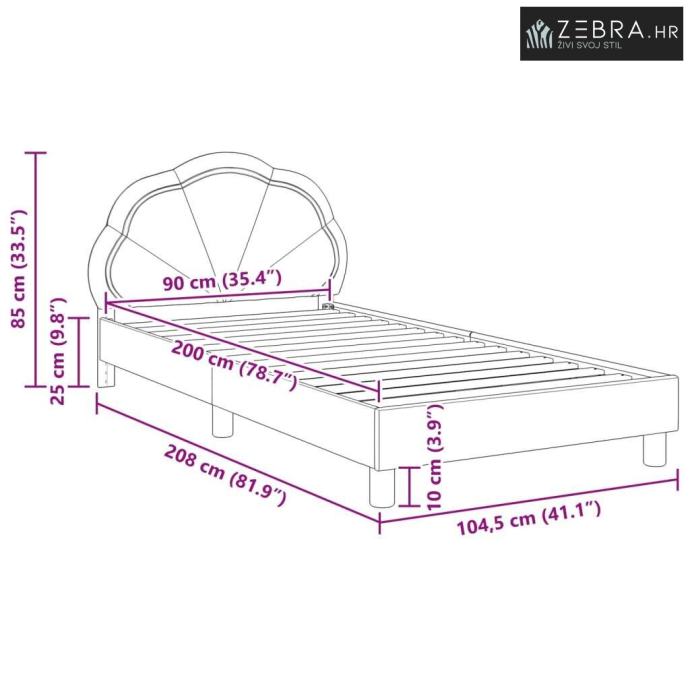 Veličina madraca: Jednostruki (90 cm x 200 cm / 35" x 79")