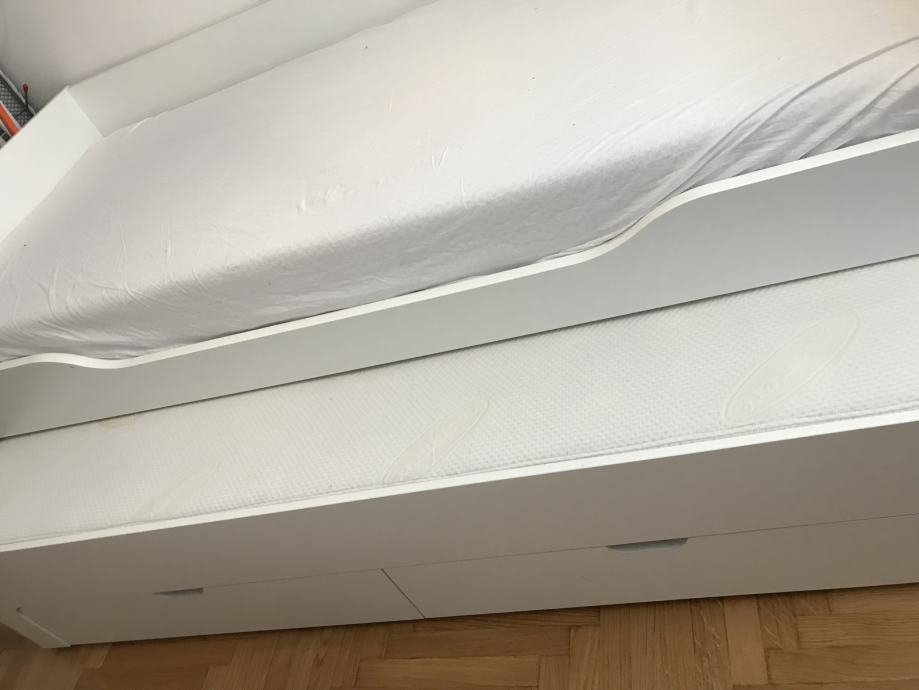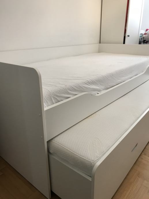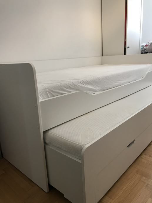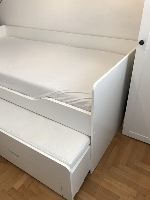 Krevet u odličnom stanju, dvije ladice, moguće izvlačenje. Za dva madraca za njega dodatnih 800 kn. Madraci su novi.