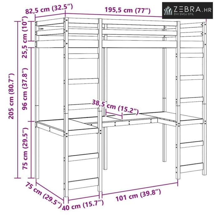 Ugrađeni radni stol: High bed dizajniran je da maksimizira prostor, dolazi s ugrađenim radnim stolom ispod. Ova pametna opcija savršena je za stvaranje kutka za učenje ili rad, pružajući fleksibilnost za pametno korištenje prostora. Idealno je za studente ili one koji rade iz kuće i trebaju funkcionalan, ali kompaktan kutak.