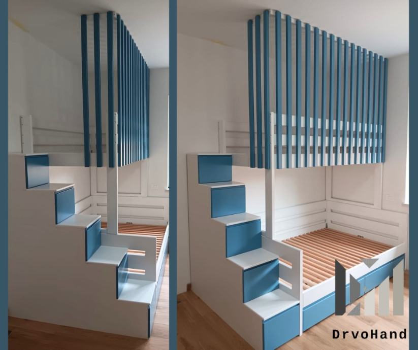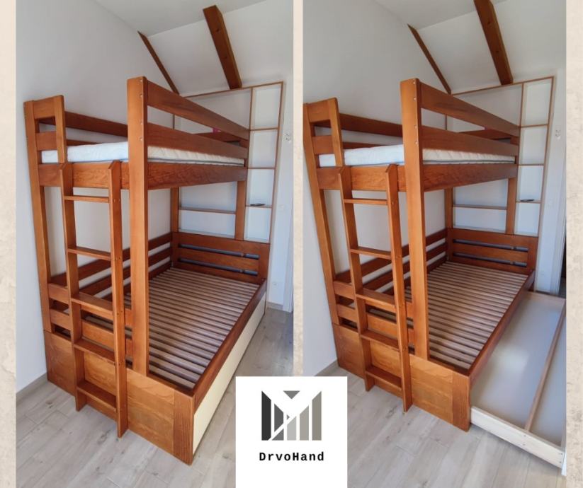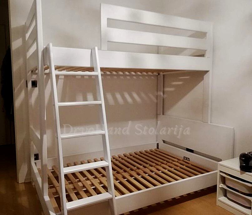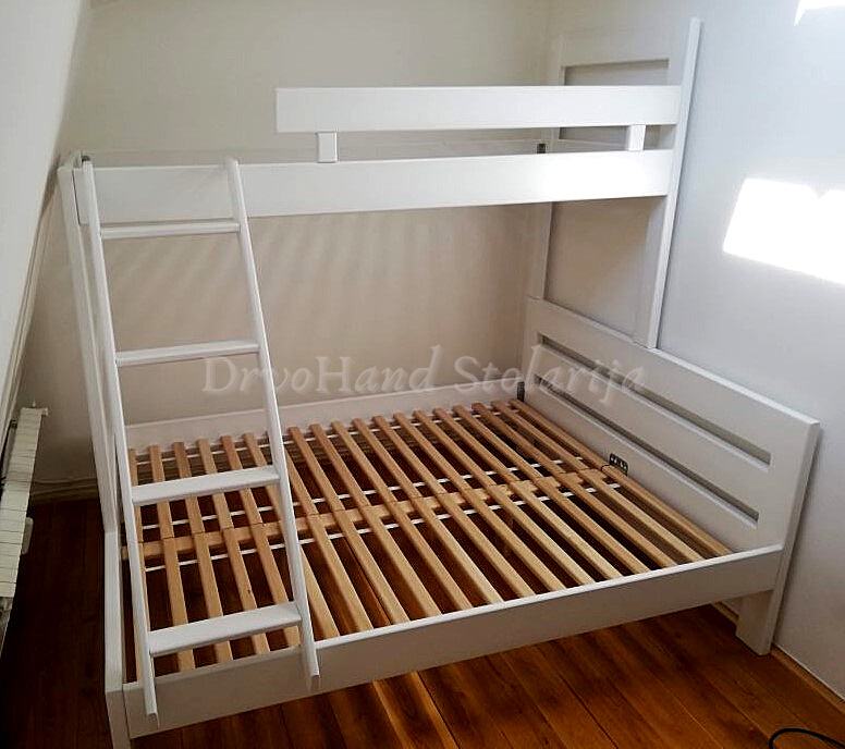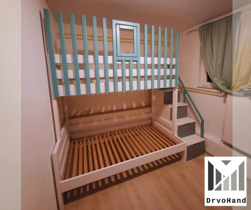 Izrađujem krevete i u mjerama po želji kupaca kao i visinu između gornjeg i donjeg kreveta koja je u startu oko 90 cm (ovisno o debljini madraca)