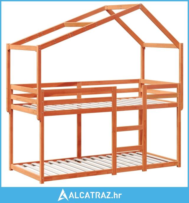 Krevet na kat s krovom voštano smeđi 75x190 cm masivna borovina - NOVO